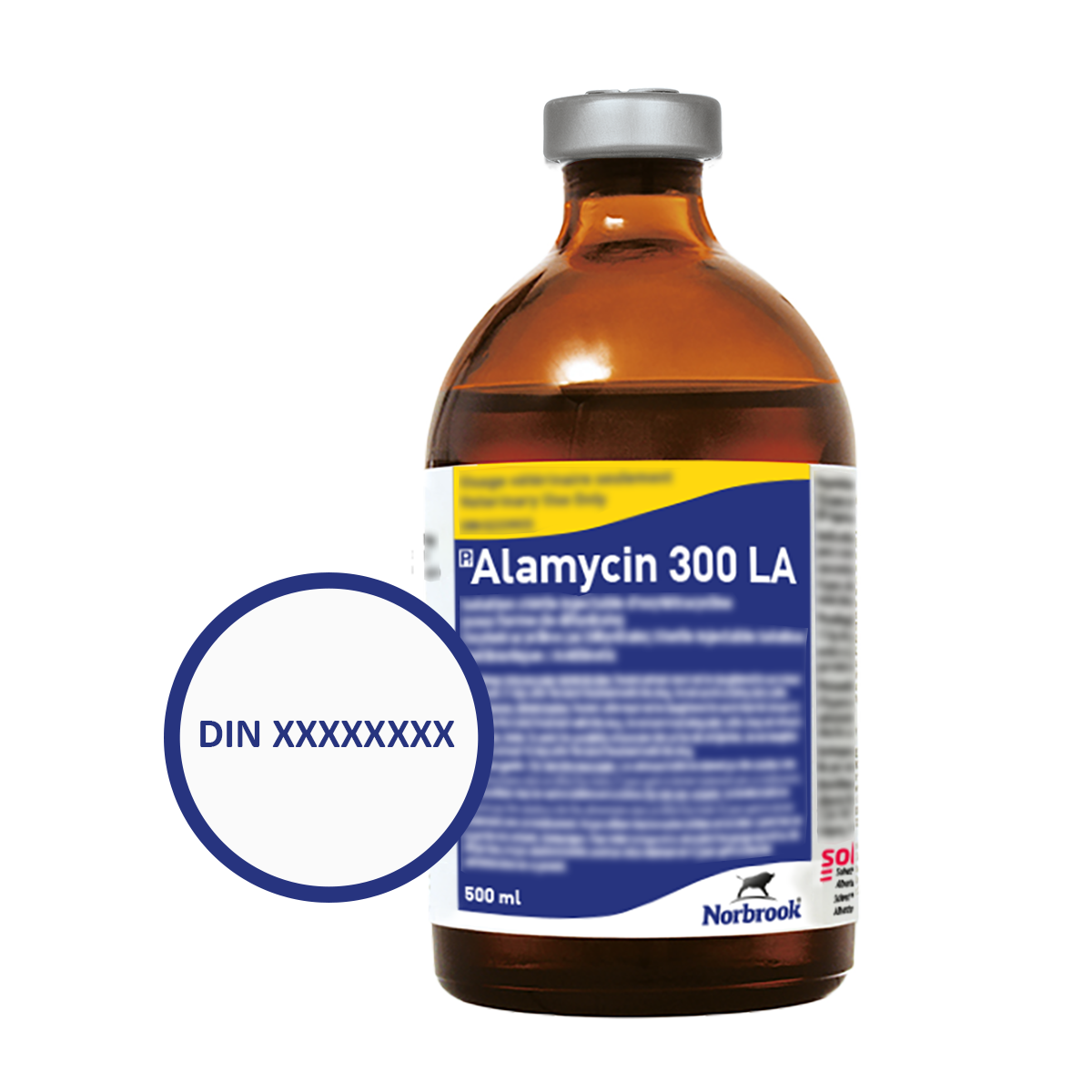 On the Alamycin 300 LA bottle or box, you will find the DIN, which is an eight-digit number.